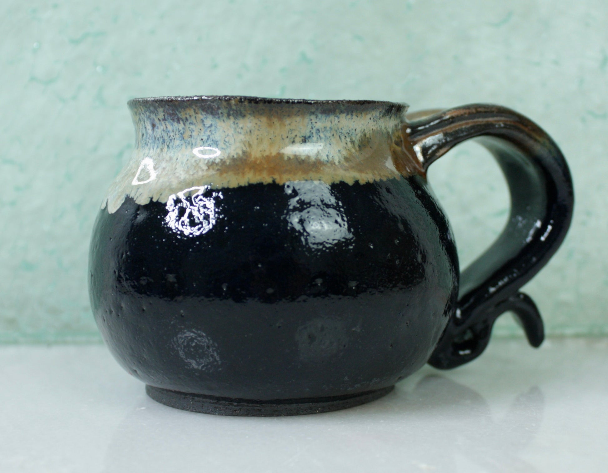 The orb-inspired shape creates a meditative experience with every sip, while the rich contrast between the deep navy and soft cream adds visual warmth to your space. Whether you're enjoying your morning coffee or an evening tea, this mug transforms an everyday moment into something special.