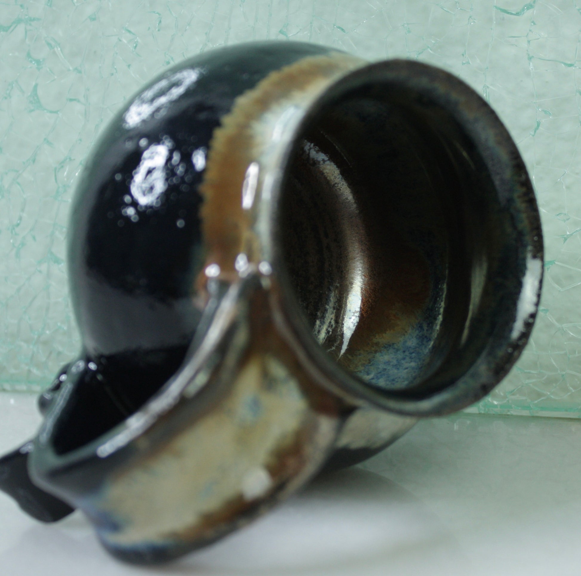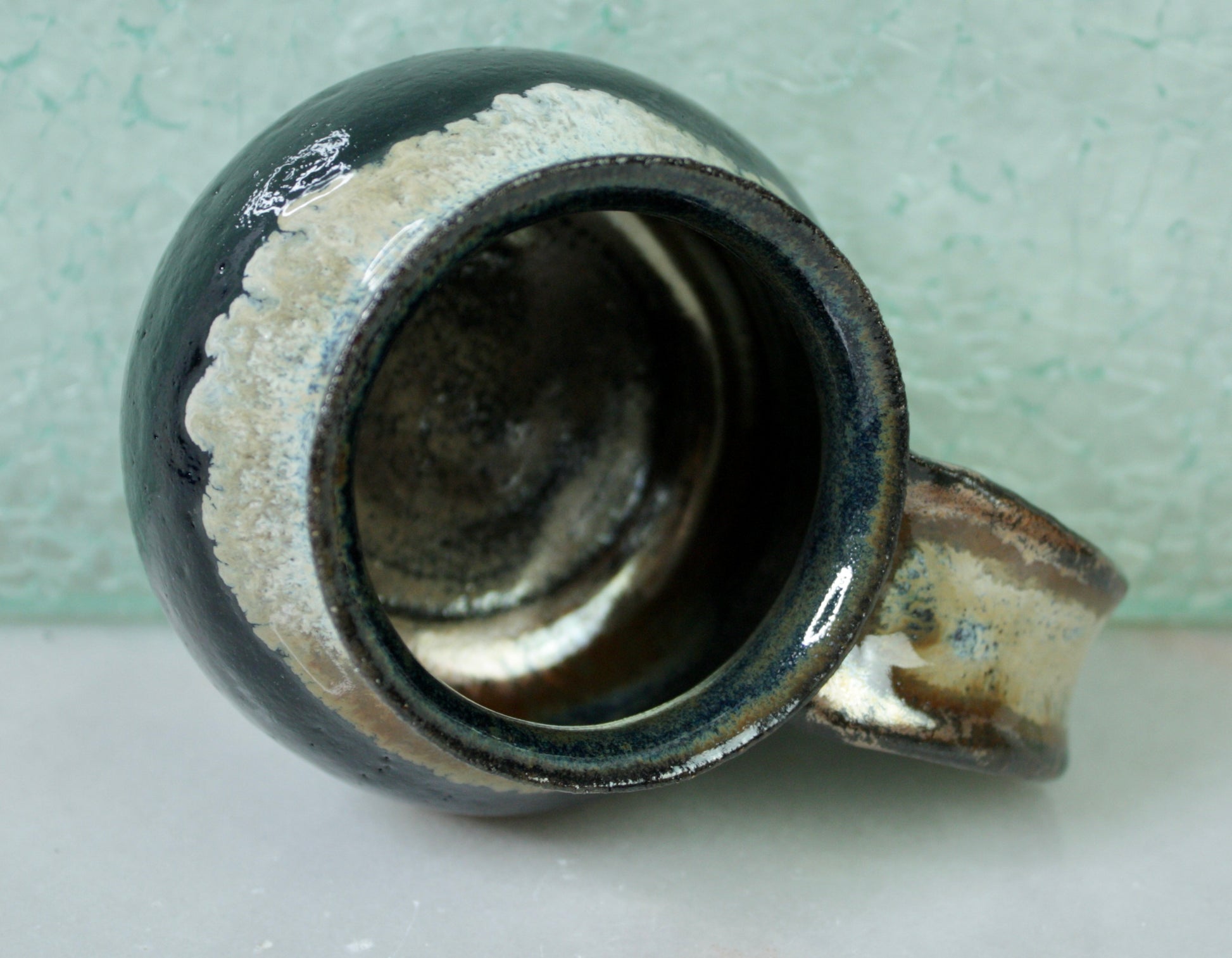 This smaller zen orb mug brings a sense of calm to your daily ritual. Handcrafted with a creamy top that flows into a dark navy blue body, it's designed to fit perfectly in your hand for a comfortable, grounded hold.
