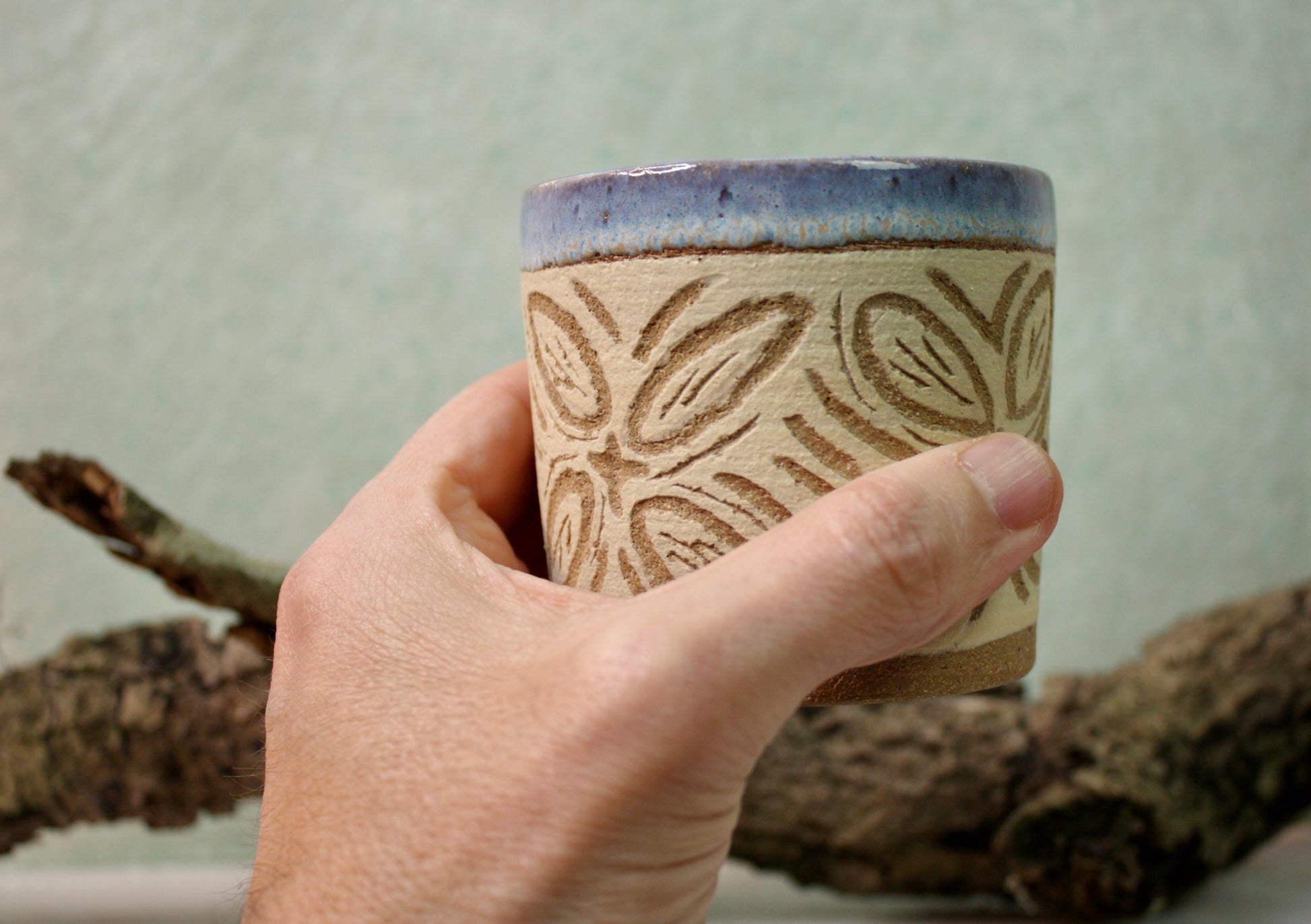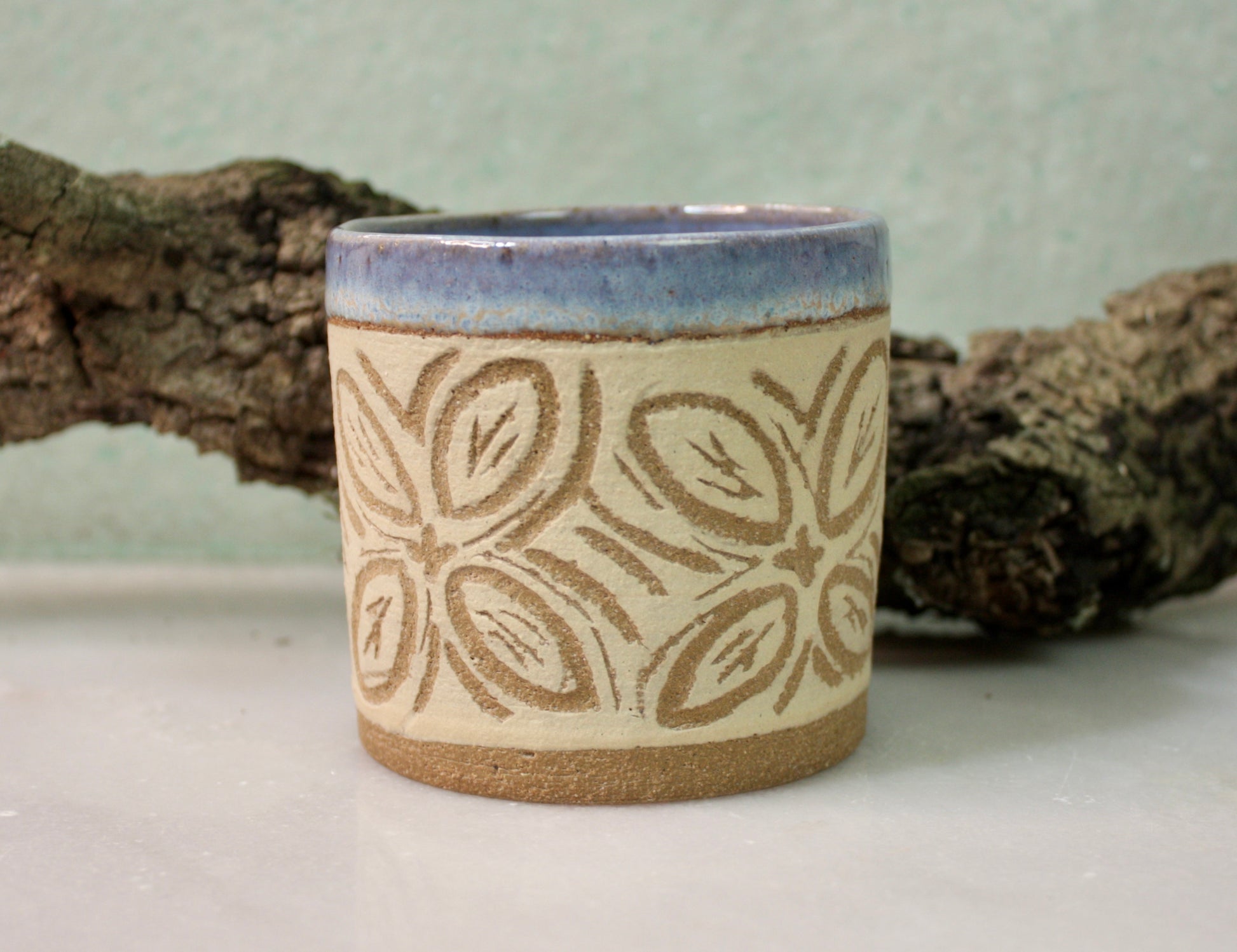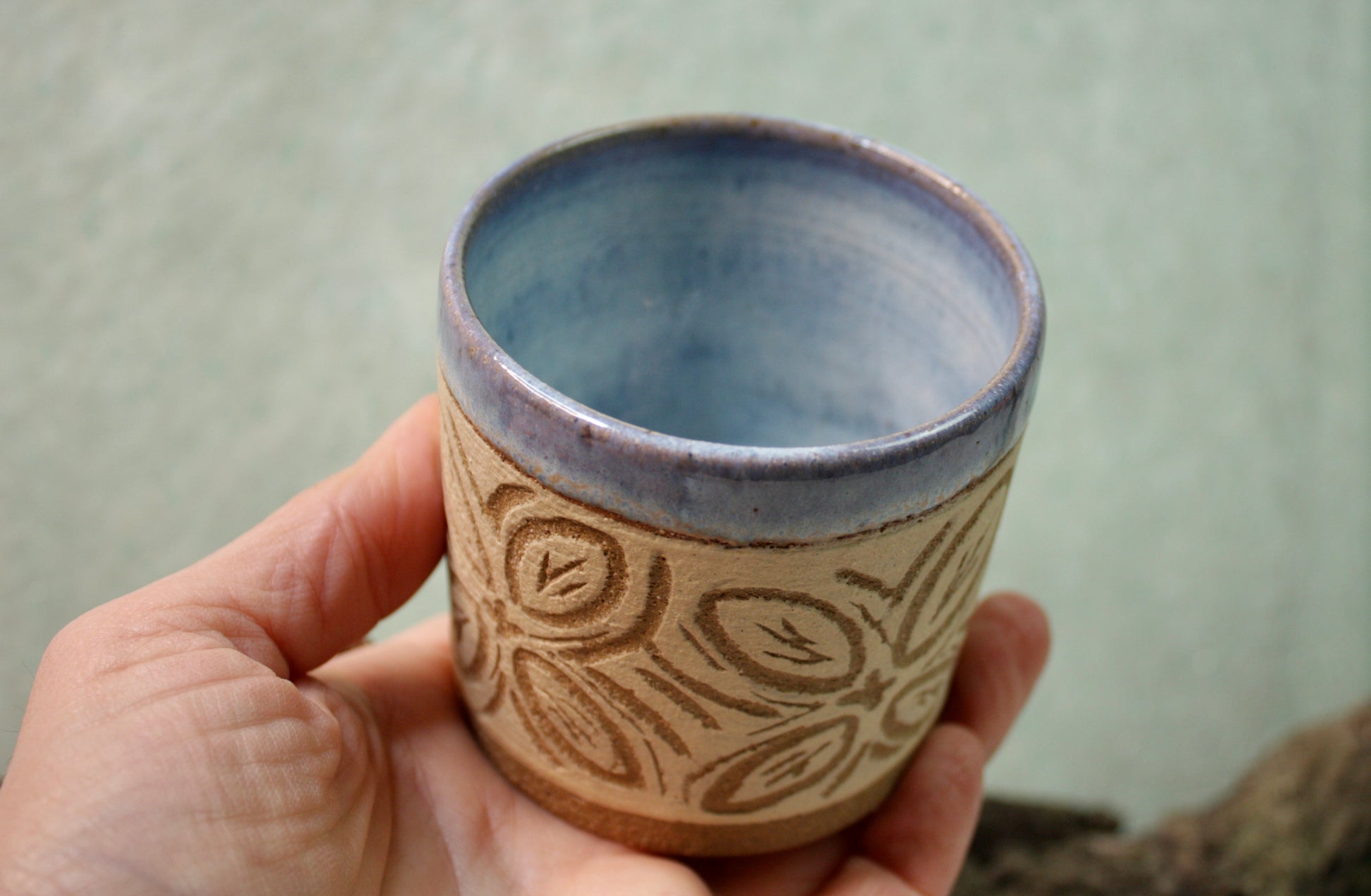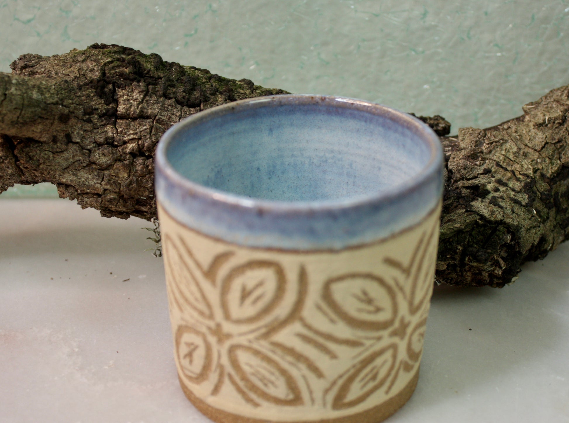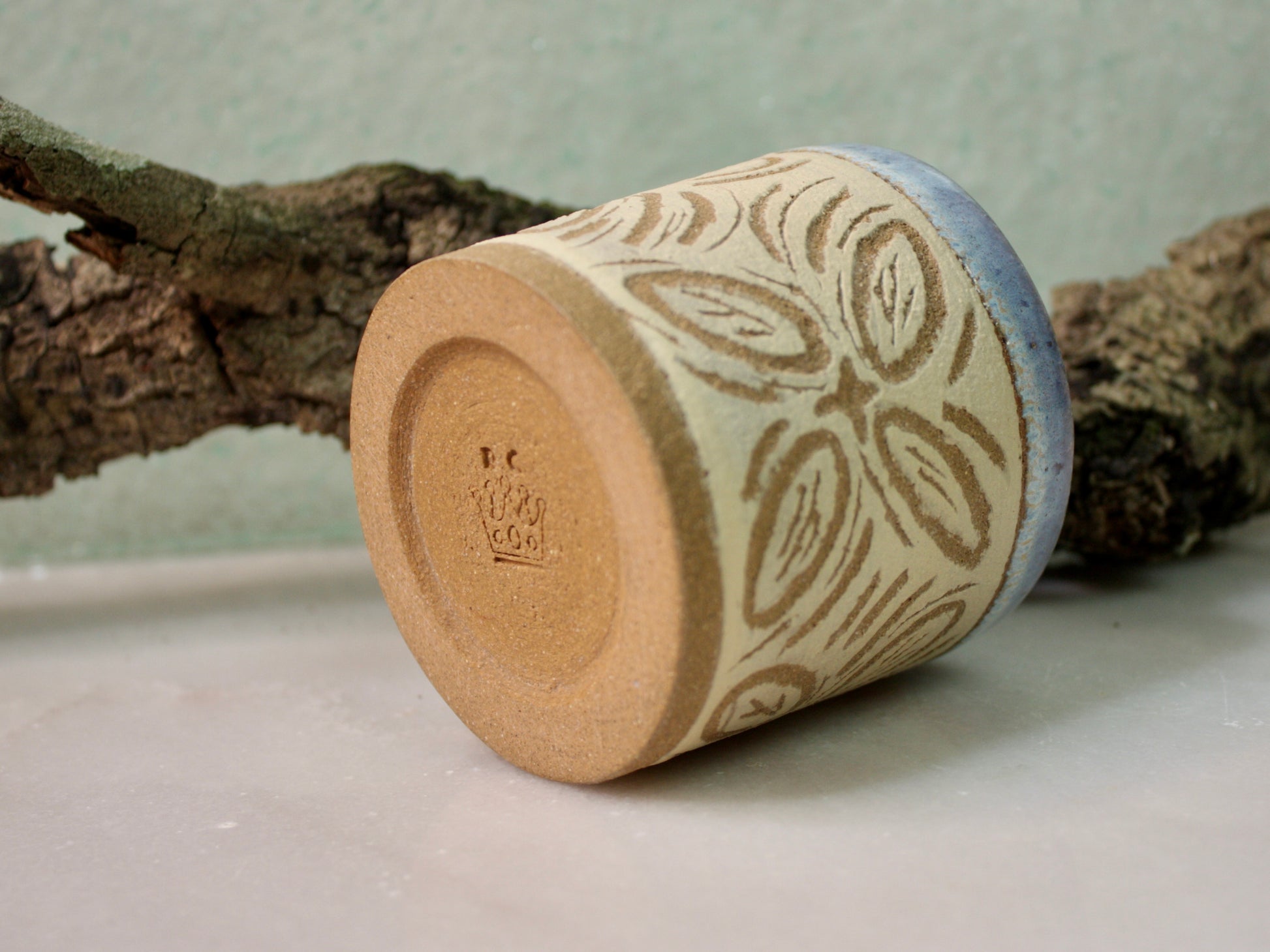 The Moon Zen Sgraffito Cortado Cup comes in a magical white/bluish glaze, featuring a geometrical design that will deliver a physical sensory experience with every sip you take of your favorite drink. Don't delay, it's the only one of its kind.