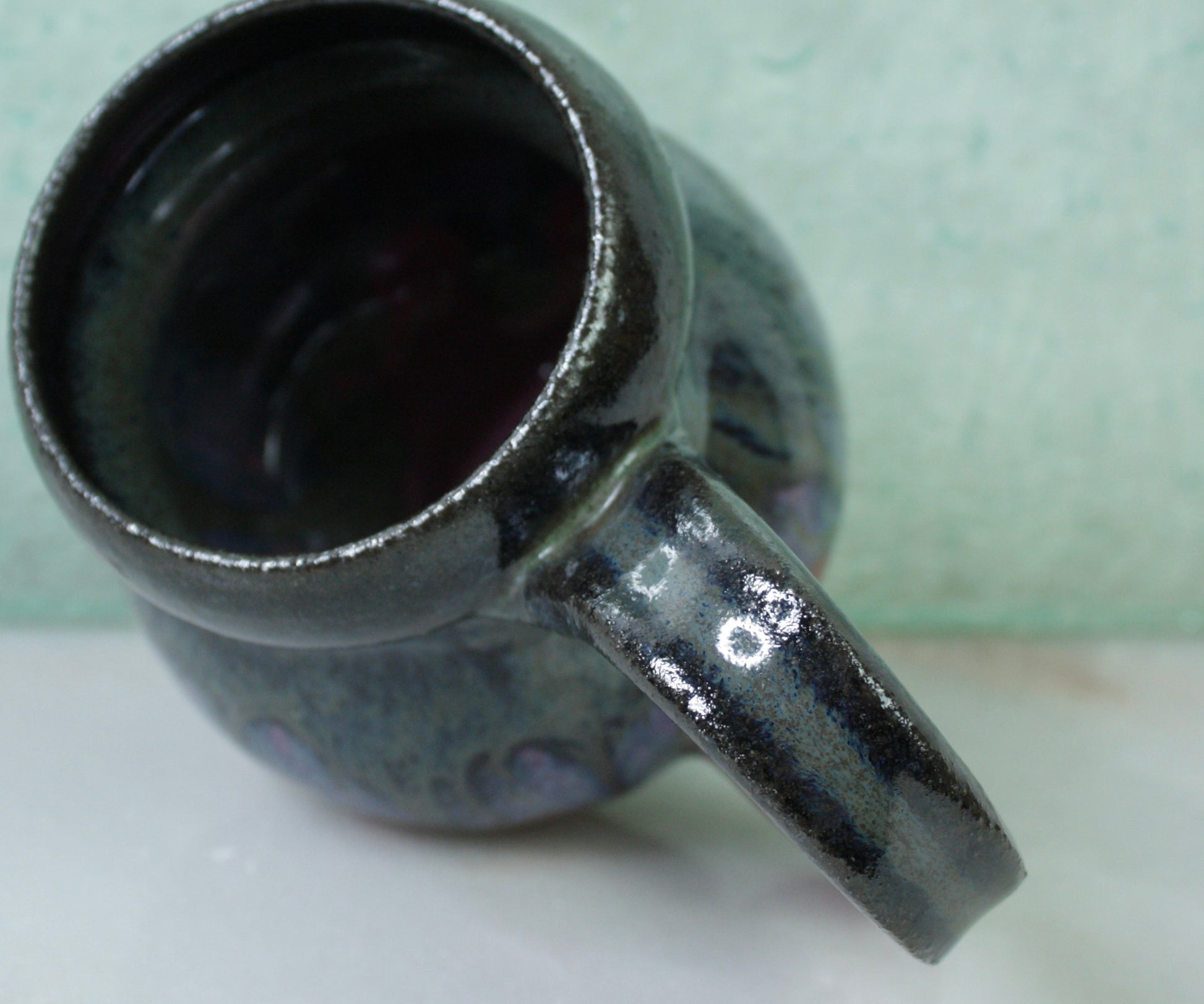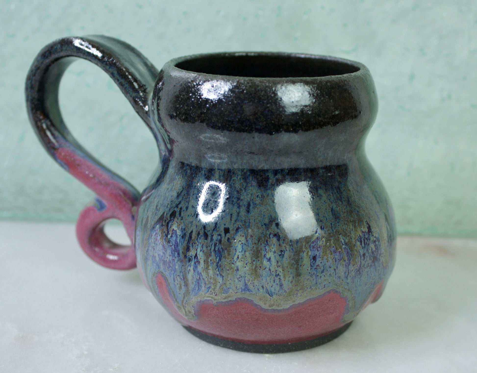 Inspired by the cosmos, this Nebula2 Zen Orb mug captures the ethereal beauty of distant galaxies in handcrafted pottery. The glaze begins with a deep slate that transforms into swirling purples, blues, and beige, flowing gracefully into a soft pinky bottom—like watching a nebula unfold across the night sky.