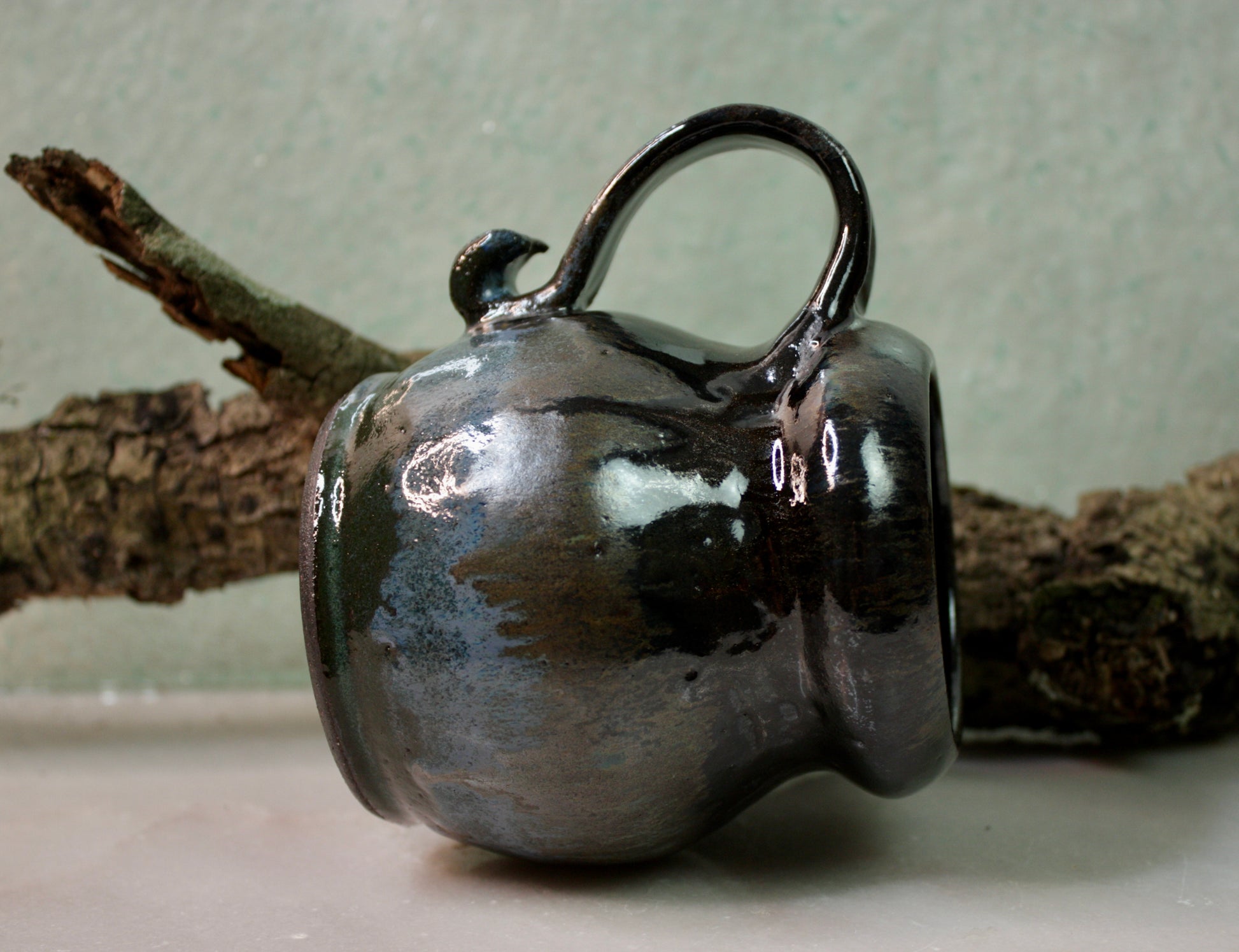 The Ritual Zen Orb Mug delivers a complex combination of blacks, browns, blues, greens, and a touch of glitter!